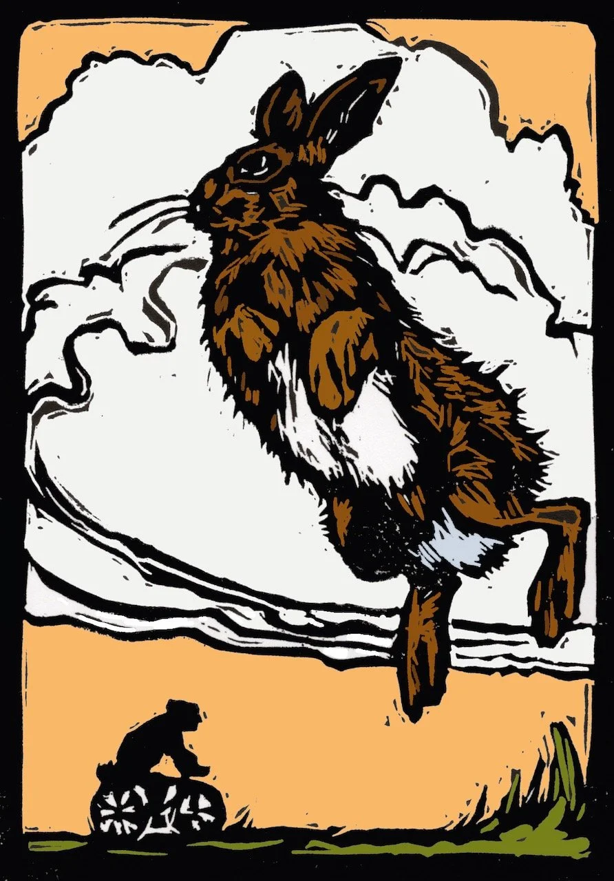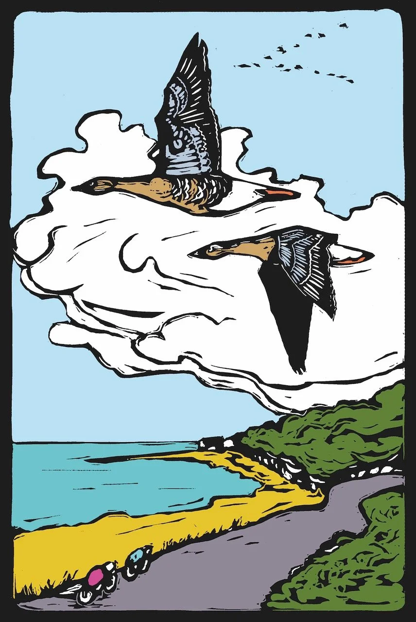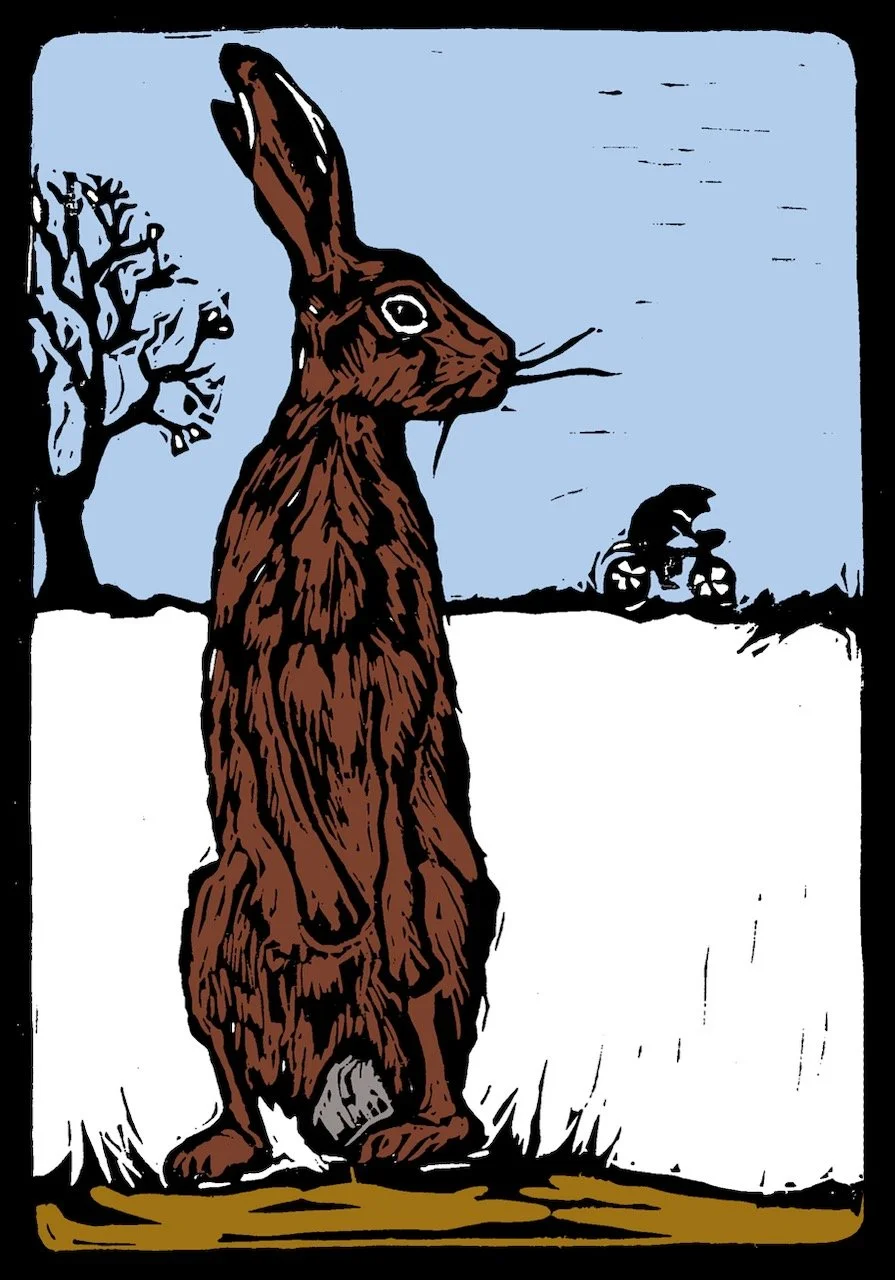 Each of the designs starts with a linocut. The images are then loaded into the computer where I add the colours. Having these digital images allows me to print the cards on very good paper, as a giclee print (on beautiful rag paper) or posters to any size.